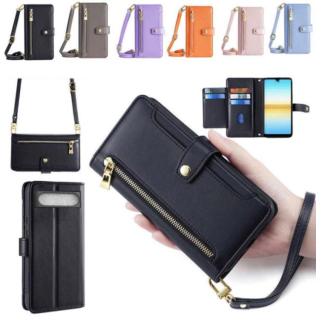 Google Pixel 8 ケース スマホショルダー Pixel 8 Pro カバー 手帳型 PUレザー 紐 ストラップ付き ファスナー付きポケット カード収納 落下防止 ショルダー 肩掛けベルト付き エレガント おしゃれ 人気 スマホカバー スマートフォン ケース カバー