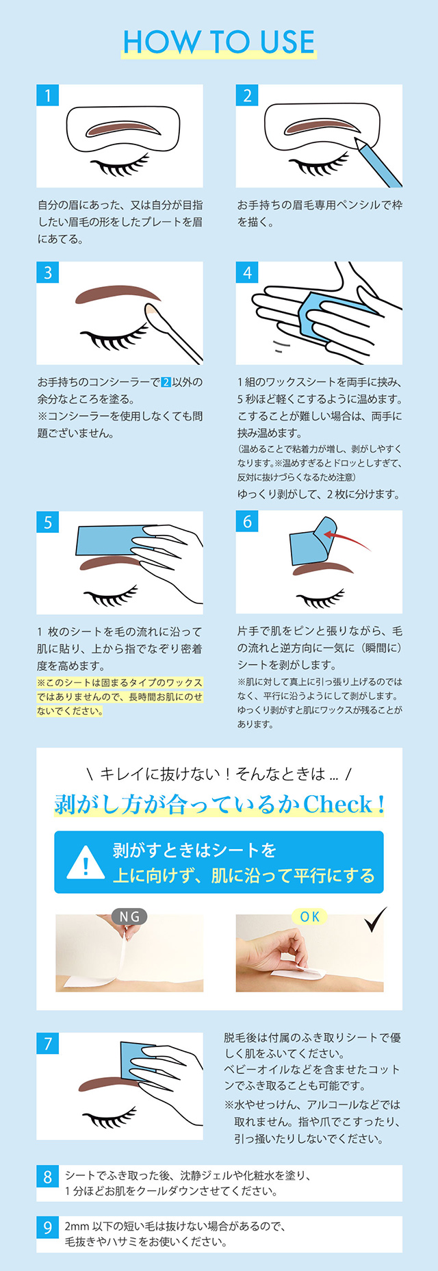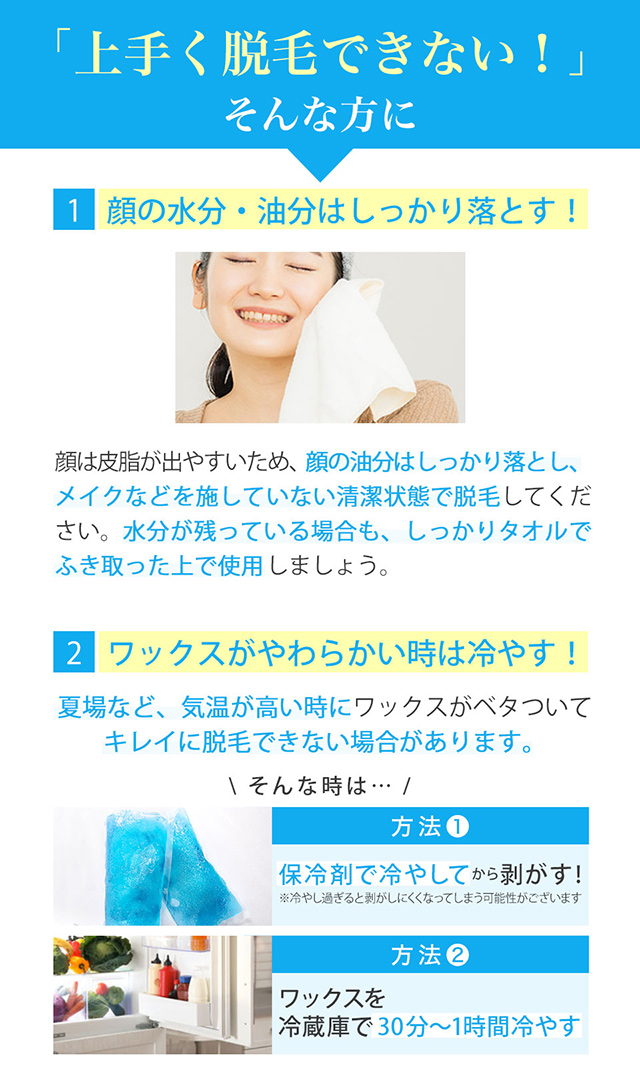 | 成分(脱毛シート) | ロジン酸グリセリル、酸化チタン、パラフィン、蜜蝋、香料、着色料 |