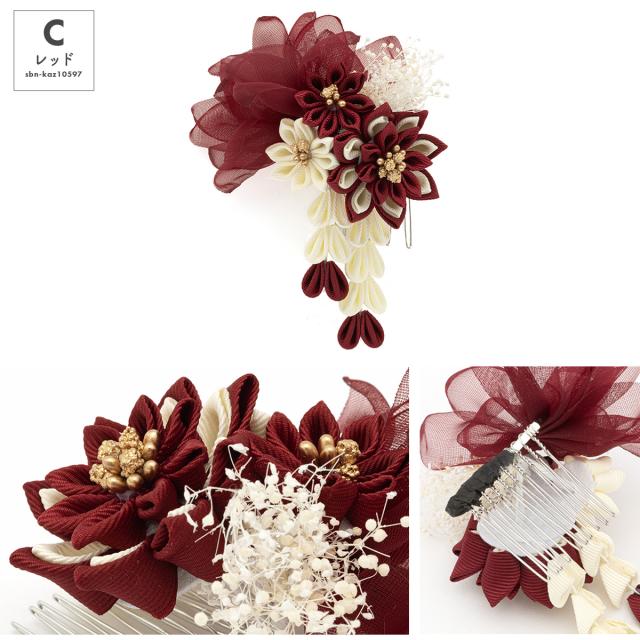 成人式 つまみ細工 髪飾り 振袖 卒業式 袴 かすみ草 花 フラワー ぶら飾り モダン コサージュ ベージュ ピンク 赤 グレー 黒 和装 送料無料