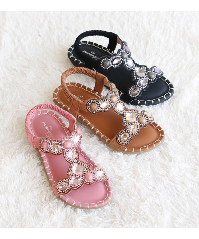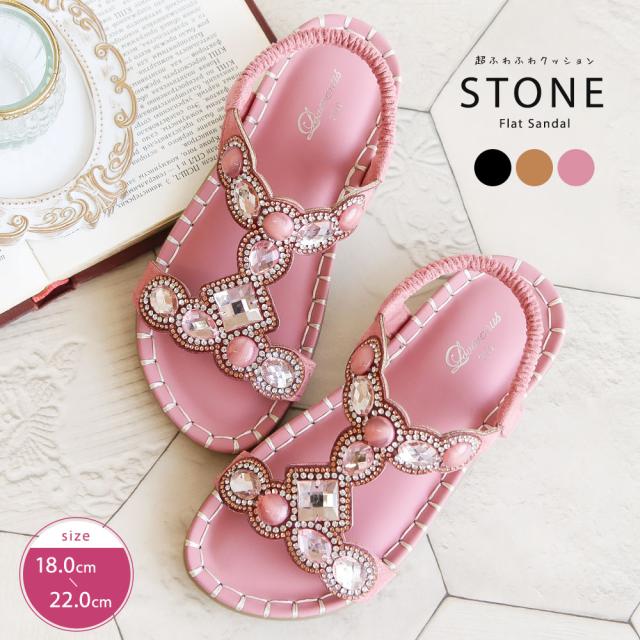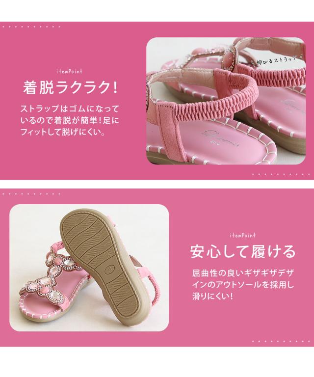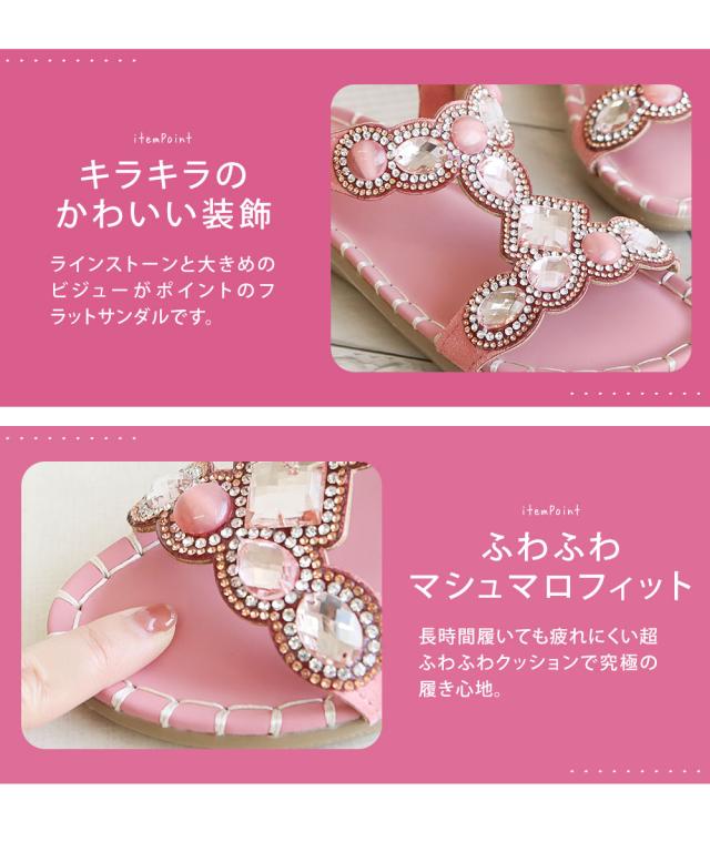 サンダル キッズ 歩きやすい フラット ぺたんこ バックストラップ 前開き 柔らか 軽量 リゾートサンダル シンプル ビーチサンダル ビーサン ビジュー かわいい 涼しい おしゃれ 痛くない マシュマロフィット ブラック 黒 キャメル ピンク ラヴヴィーナス Love venus 17549
