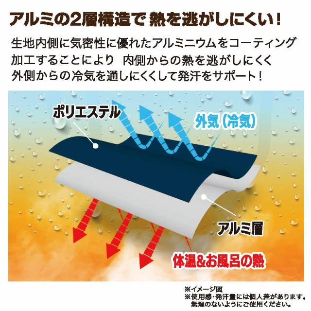 生地内側に気密性に優れたアルミニウムをコーティング加工することにより、内側からの熱を逃がしにくく、外側からの冷気を通しにくくして発汗をサポート!気密性を調節できる。
