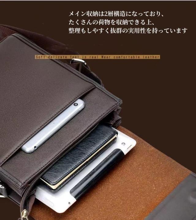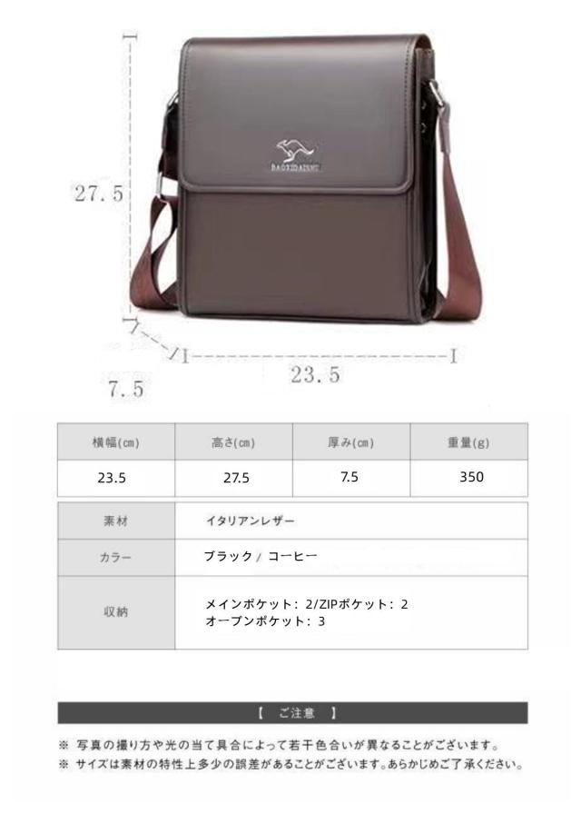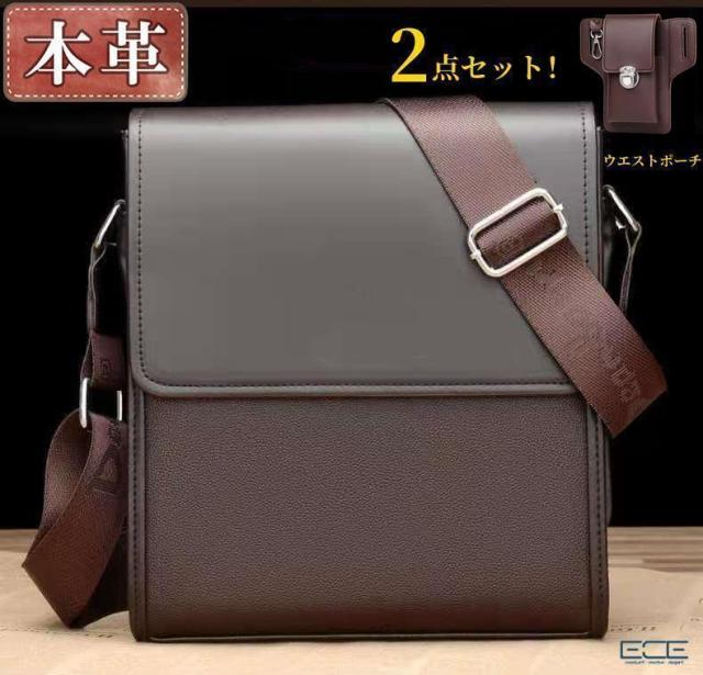 【2点セット】ショルダーバッグ メンズ イタリアンレザー 本革 肩掛け 斜め掛け 大人 軽量 通勤 ブランド 大容量 多収納