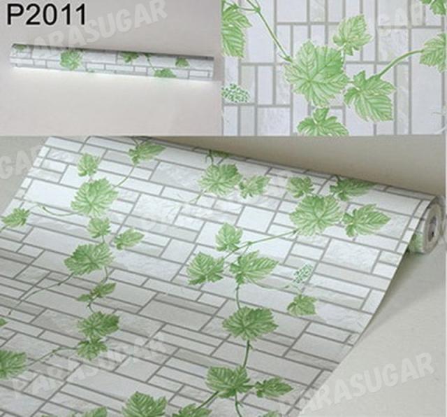 【10M】p2011 レンガ×葉っぱ リーフ 壁紙 シール リフォーム 多用途 ウォールステッカー はがせる リメイクシート
