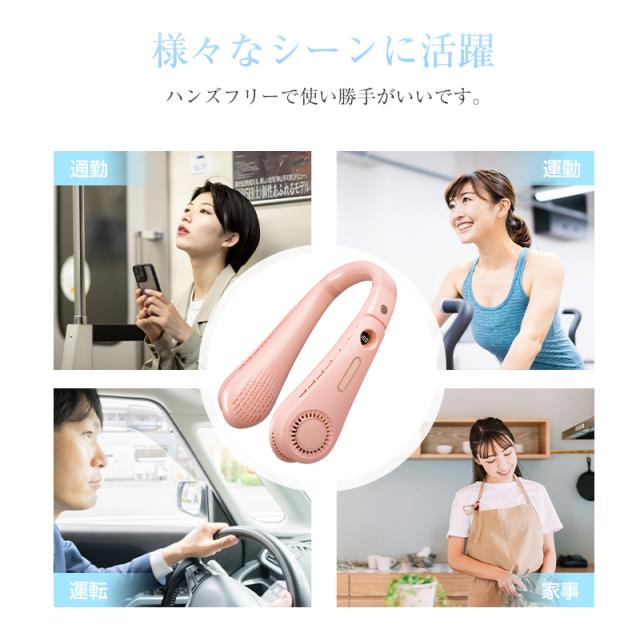 【ハンズフリーで超便利】スイッチを入れて首に下げると、首元から顔にかけてダイレクトに風が駆け抜けます。ハンズフリータイプだから「座りながら・歩きながら・自転車に乗りながら・運動しながら」など、どんなシーンでも自由に使えます。