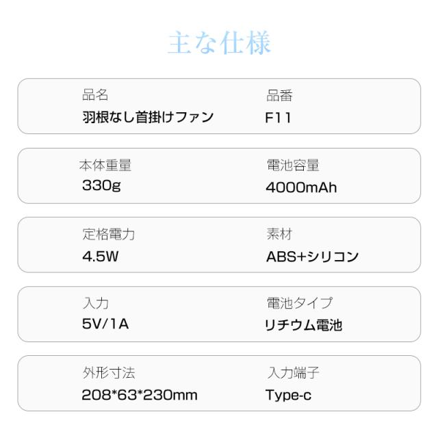 セット内容:ファン本体*1、Type-C充電ケーブル*1、取扱説明書*1。