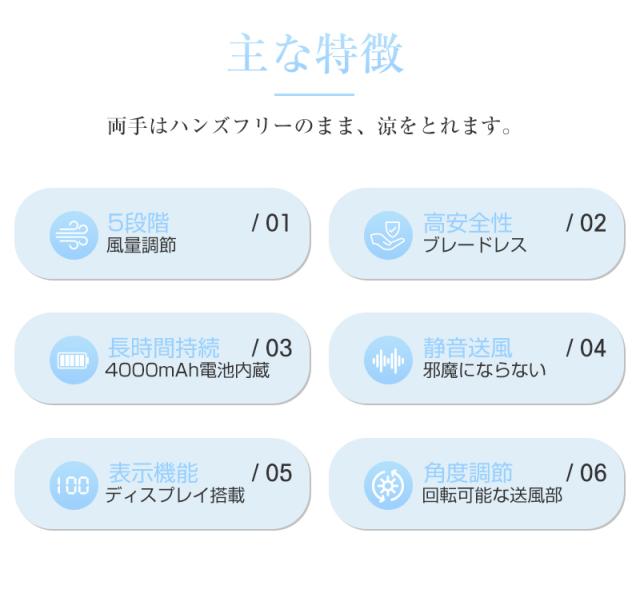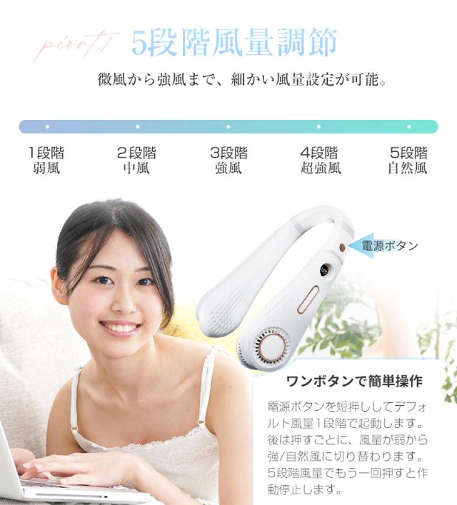 ネックファン 首掛け扇風機 羽根なし ブレードレス ポータブルファン 広角送風 約330g軽量 首への負担が少ない 静音 携帯 ながら使用 【PL保険加入済み製品・安心】