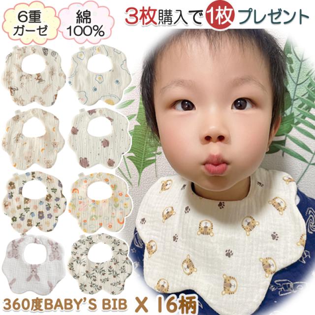 3枚購入+1枚プレゼント 】送料無料 スタイ 福袋 360 よだれかけ よだれカバー お食事エプロン ベビー 女の子 男の子 かわいい おしゃれ ガーゼ ビブ スタイセット 綿 シンプル 6重ガーゼ 前かけ 赤ちゃん 子供 コットン 保育園 入園準備 出産祝い