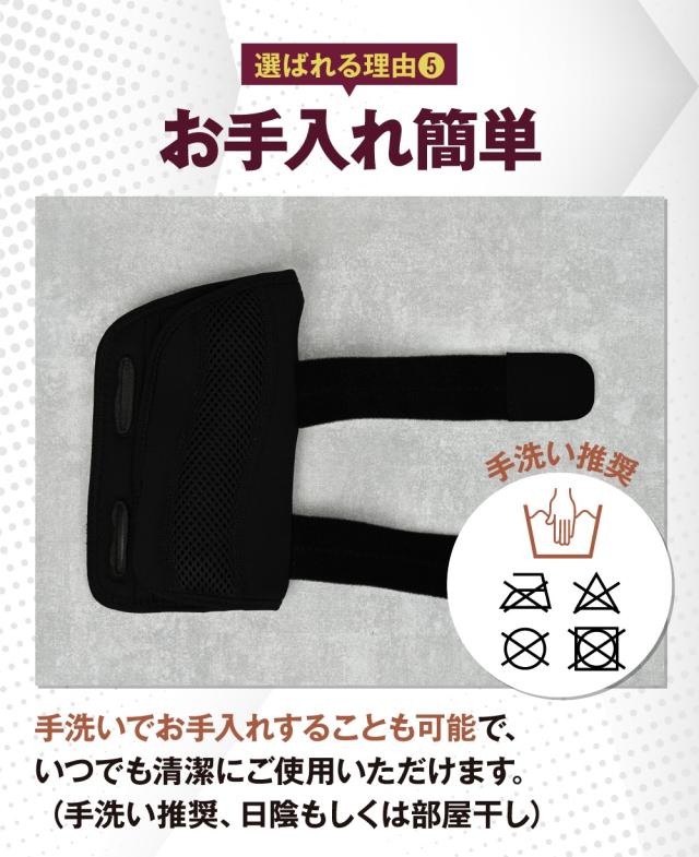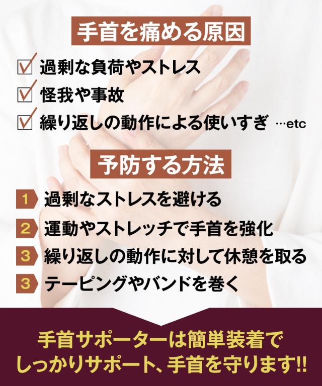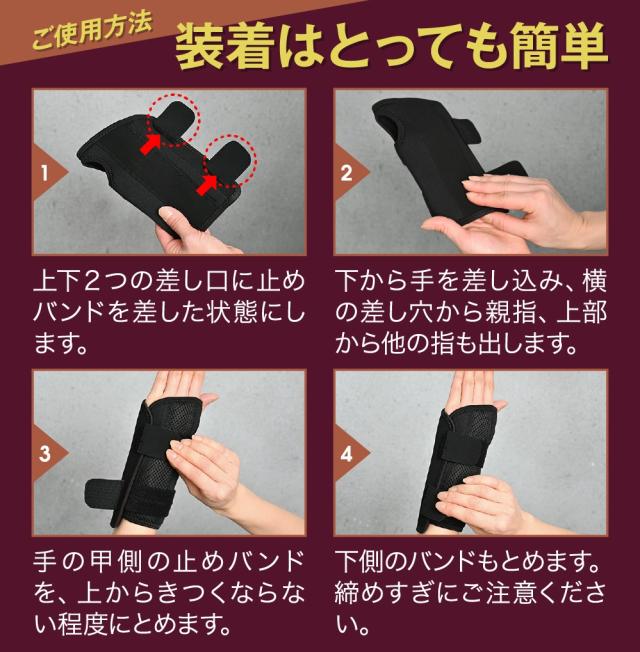 ・サポーターの締め込み過ぎや手首に違和感を感じるときは緩めてください。