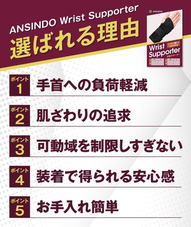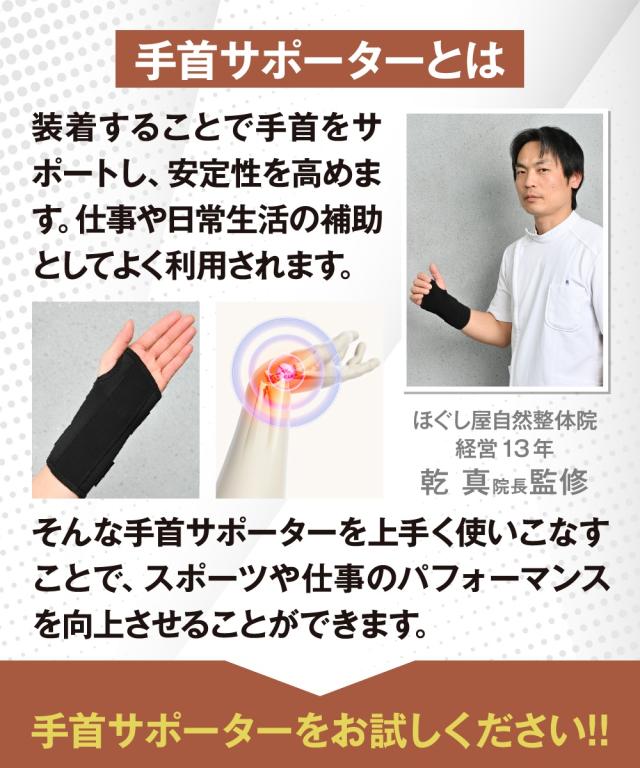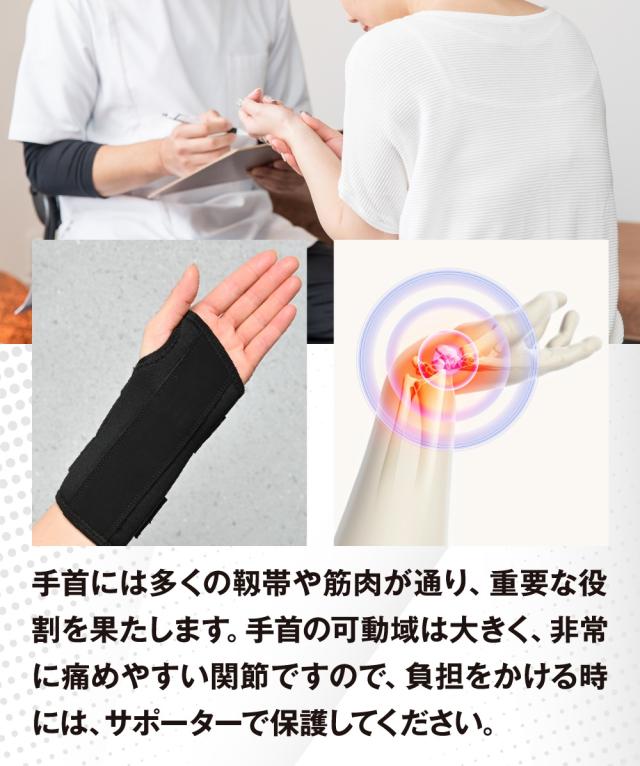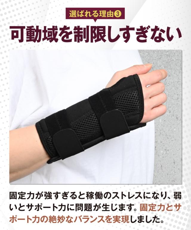 仕事などで手首を駆使しても負担がすくなく、動きやすくもしっかり固定、そんなサポーターを用意。
