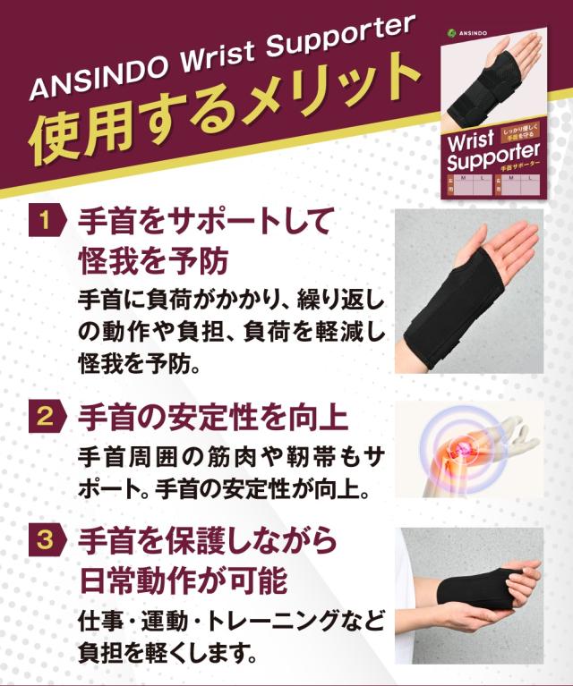 【ANSINDO】手首サポーター 手首 サポ—ター 手首用サポーター てくびサポーター 手首固定 締付調整 スポーツ 仕事などの繰り返し作業 男女兼用 送料無料