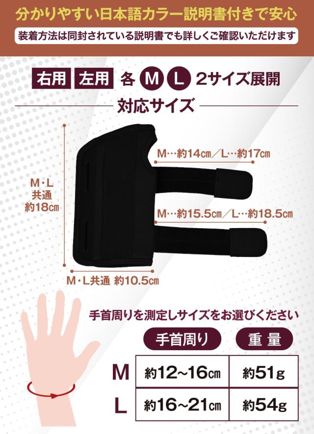 左手首用、右手首用 ともに2サイズ、ご用意