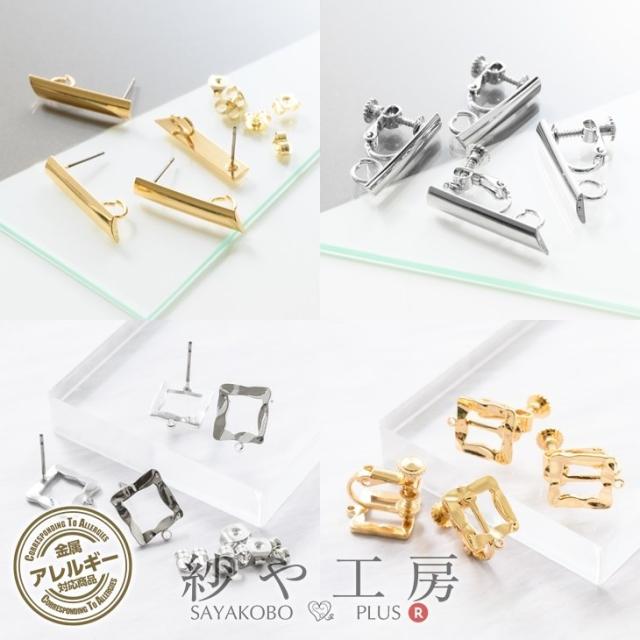 ピアスパーツ イヤリングパーツ ニッケルフリー 金属アレルギー対応 アクセサリーパーツ パーツ ゴールドシルバー 2ペア 4個 スクエア 変色防止加工済 金属アレルギー対応 ポストピアス ネジバネ 問屋 ポストタイプ アレルギーフリー さや工房 手作り卸 おすすめ
