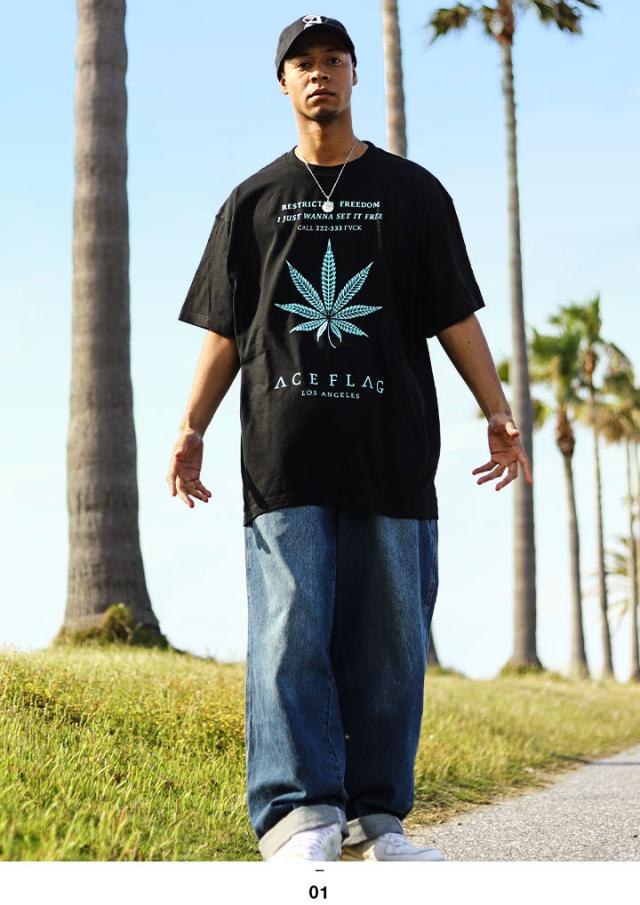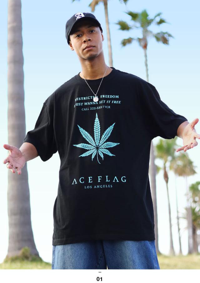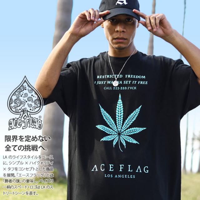 ACEFLAG Tシャツ 半袖 メンズ 黒 大きいサイズ エースフラッグ ミントグリーン ミント ブルー オーバーサイズ 大麻 マリファナ ヘンプ b系 ヒップホップ ファッション ストリート系 ハイ ブランド 服 AF-TS-TS-018