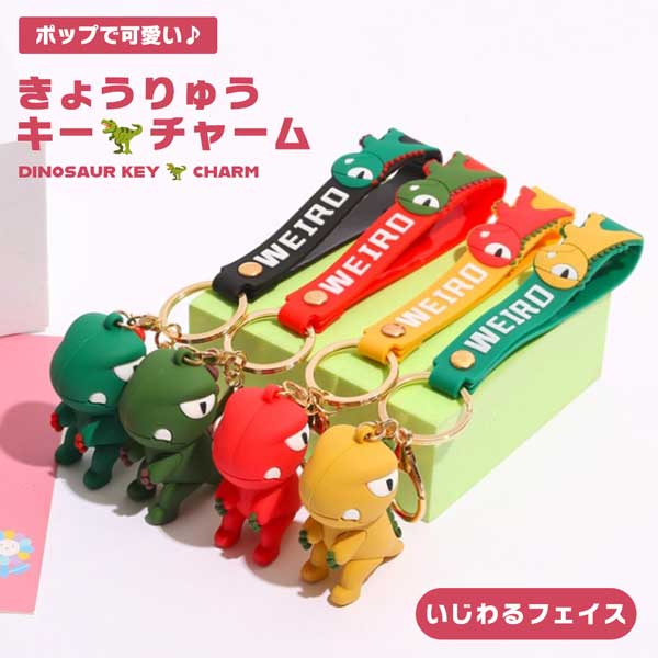 キーホルダー キーチャーム キーリング キーリング式 キーフック バッグチャーム 恐竜 きょうりゅう 可愛い ハンドストラップ レディース メンズ キーチェーン ホルダー バッグ アクセサリー 車 鍵 キーホルダー バッグ飾り PVC かわいい プレゼント