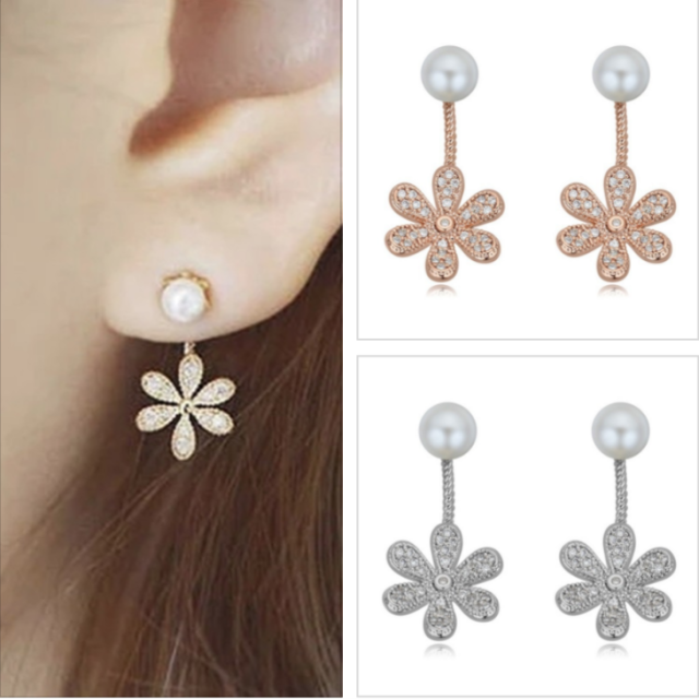 フラワー 花 パール ピアス ★ レディース ジュエリー スタッド ピアス 揺れる 耳飾り イヤリング オシャレ アクセサリー 金 銀 K35-11
