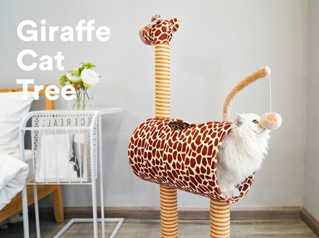 キャットタワー キリン アニマル 据え置き 置き型 爪とぎ インテリア 長持ち 頑丈 トンネル 隠れ家 ポンポン ボール お昼寝 運動不足 遊び場