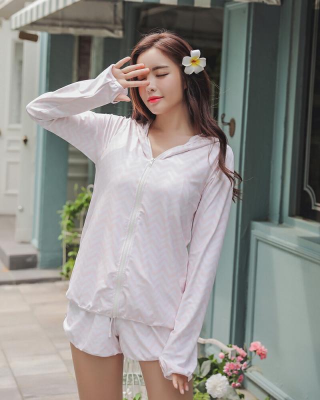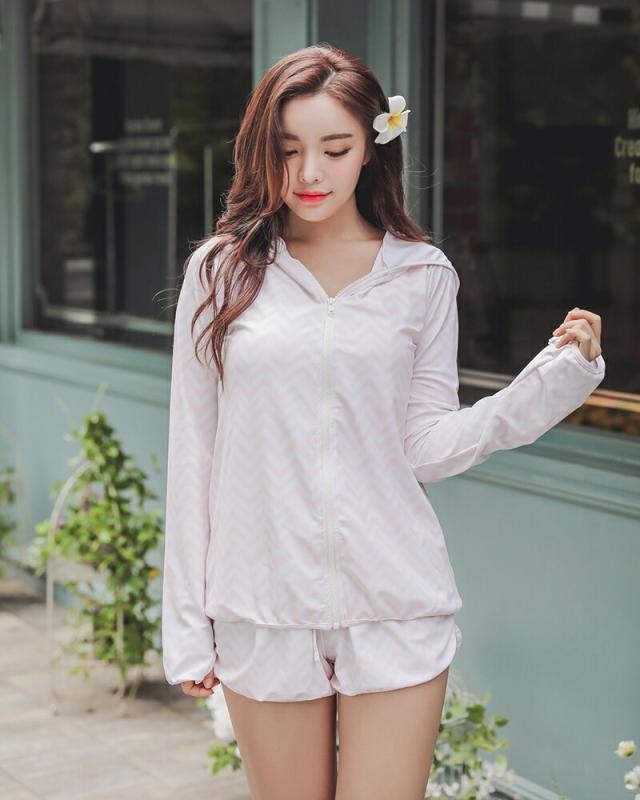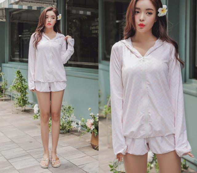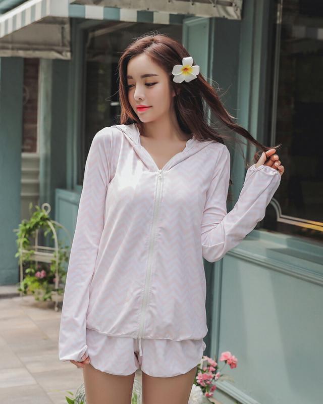 ラッシュガード レディース 上下セット UVカット 紫外線対策 速乾 パーカー フード ショートパンツ シェブロン柄 ボーダー 送料無料