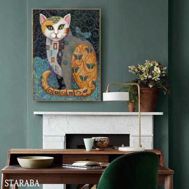大還元クーポン 絵画 ファブリック ネコ 猫 パネル 枠付き 40×60cm アート 人気 モダン 絵 装飾 額入り画 額装込 インテリア アートパネル リビング プレゼント 壁掛け 壁絵 ホテル 旅館 カフェ アートフレーム 送料無料