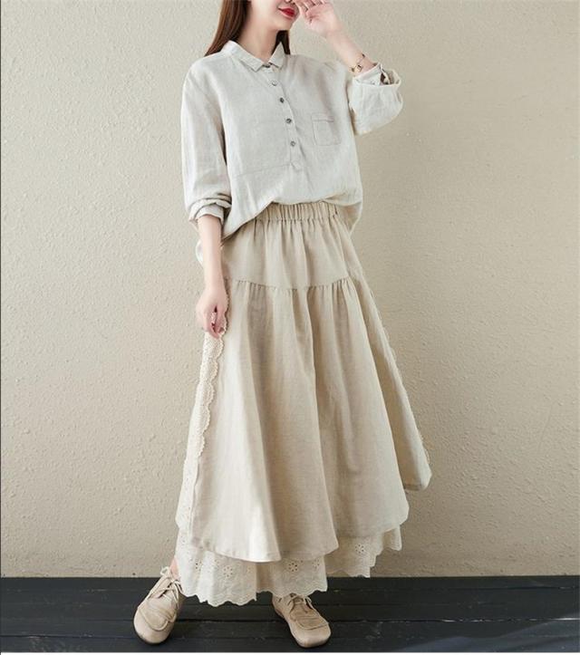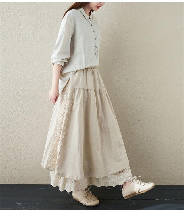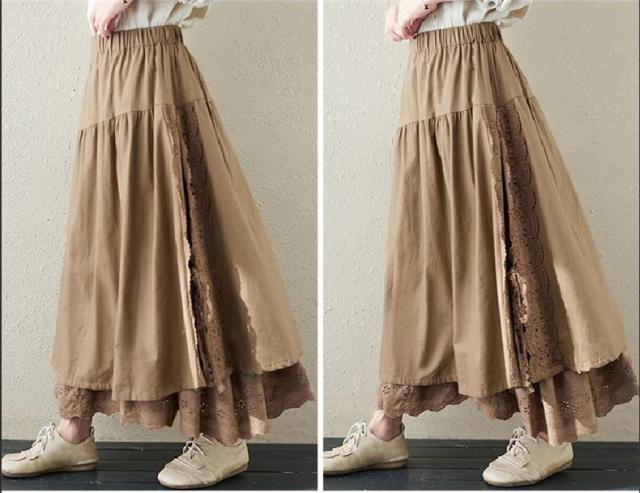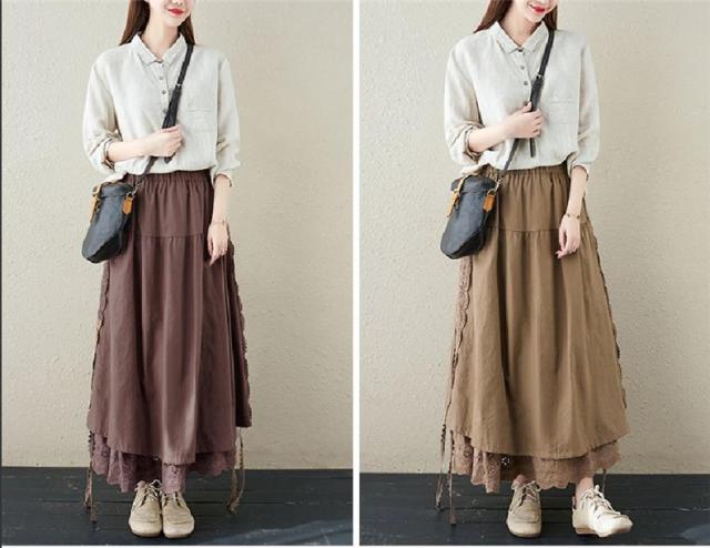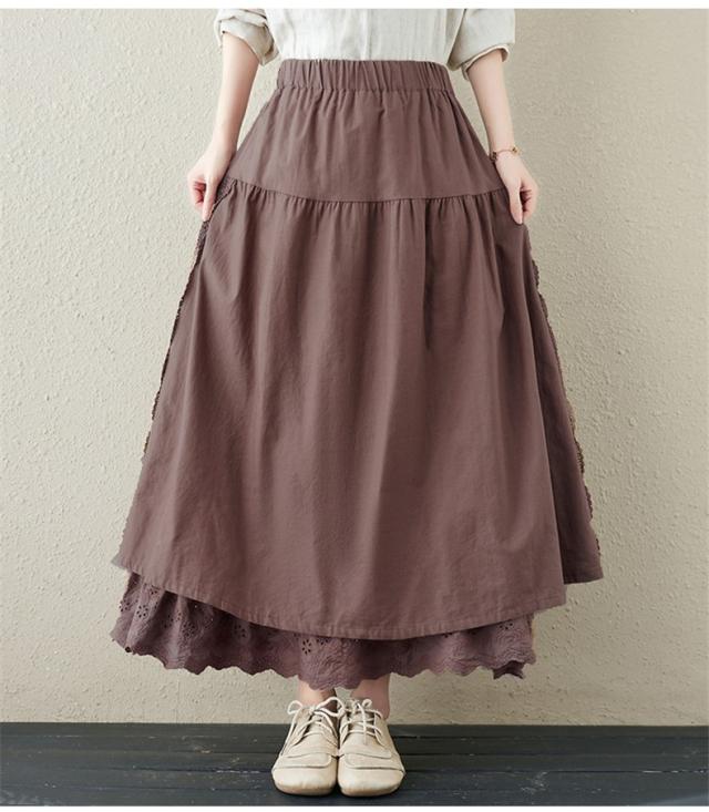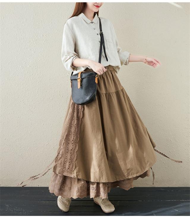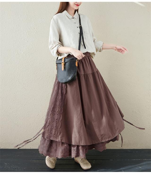 スカート 春夏 ボトムス ロングスカート フレアスカート レディース レース マキシ丈 無地 大人 自然に体型カバー フレア ゆったりとした