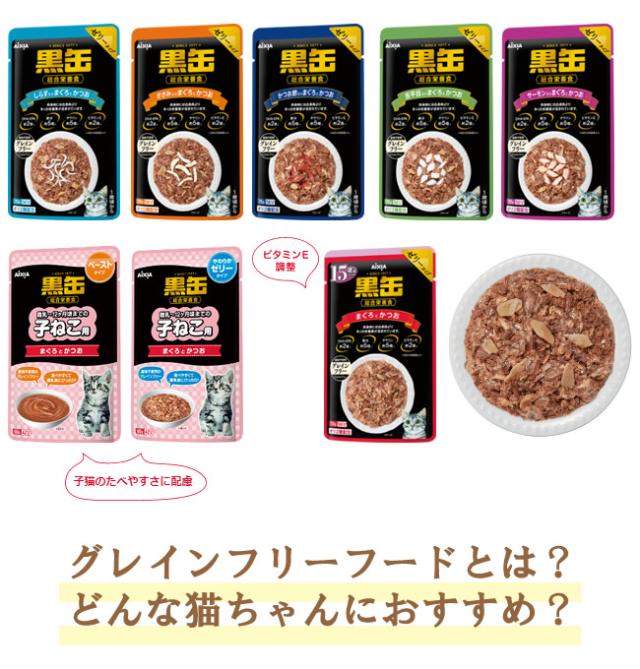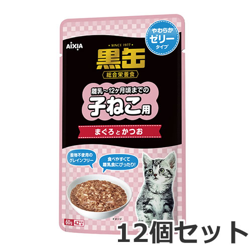 ★【メール便】【今月のお買い得商品】12個セット アイシア 黒缶パウチ 子ねこ用 まぐろとかつお やわらかゼリータイプ 60g キャットフード パウチ 総合栄養食 グレインフリー 送料無料