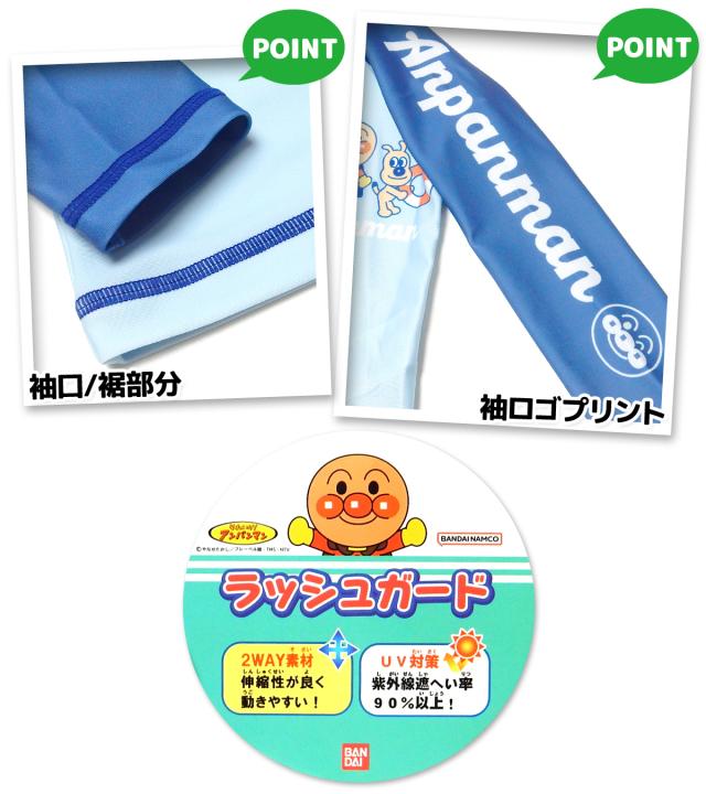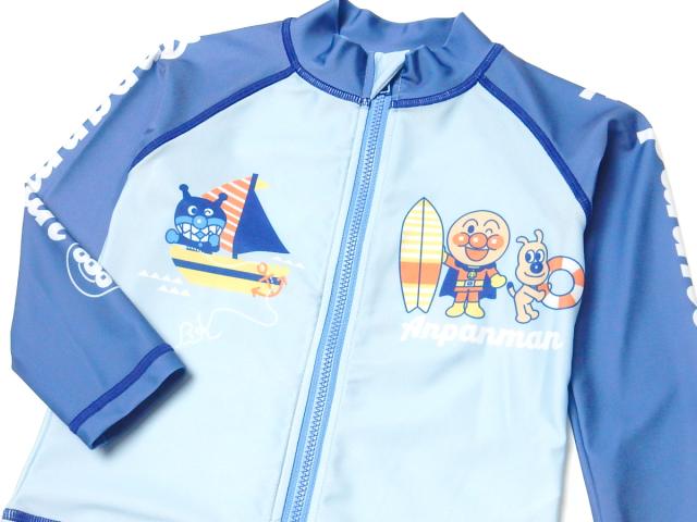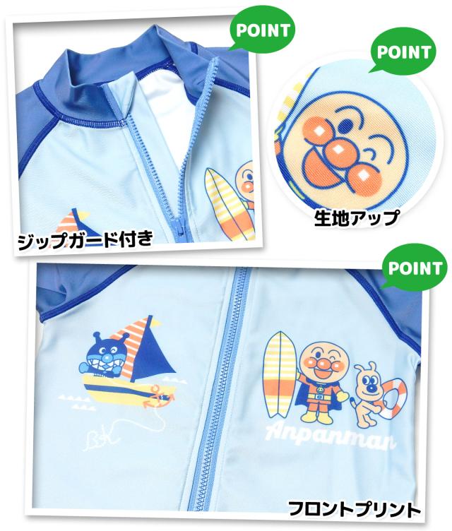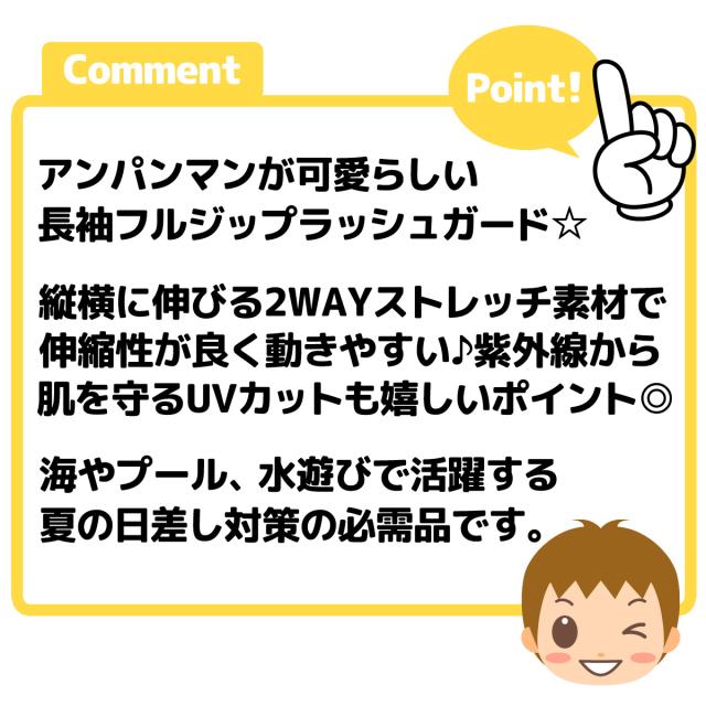【送料無料】男児 ベビー UVカット 長袖 ラッシュガード アンパンマン フルジップ 水着 スイムウェア 2WAYストレッチ 伸縮性 男の子 80cm 90cm 95cm iw-0876【メール便対応】