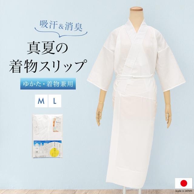 着物スリップ きものスリップ 肌着 着物 白 消臭 防臭 抗菌加工 衣紋抜き バチ衿半衿付き 井登美 和装下着 日本製 メール便 送料無料