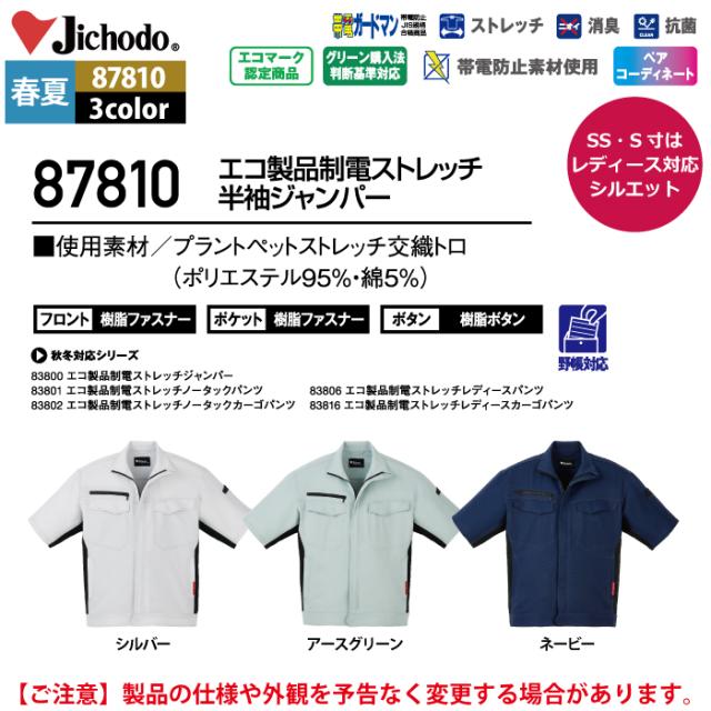 自重堂 作業服 87810 エコ製品制電ストレッチ半袖ジャンパー EL 春夏用 作業着