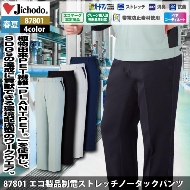 自重堂 作業服 87801 エコ製品制電ストレッチノータックパンツ 70-88 春夏用 作業着