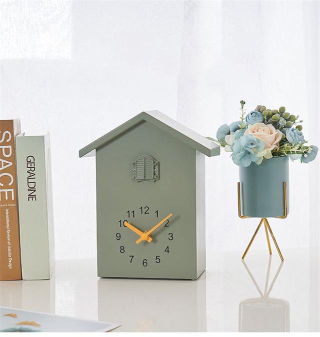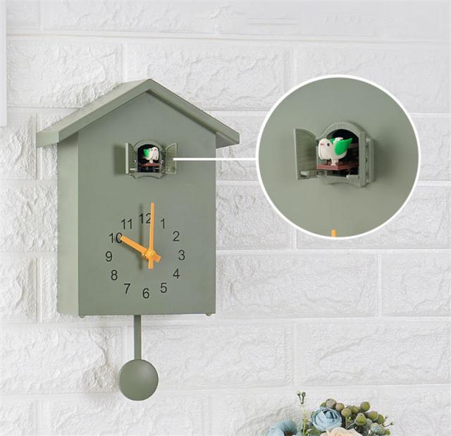 可愛らしいハト人形や、揺れる振り子が、ナチュラルな雰囲気でどこか懐かしい温もりを感じさせます。