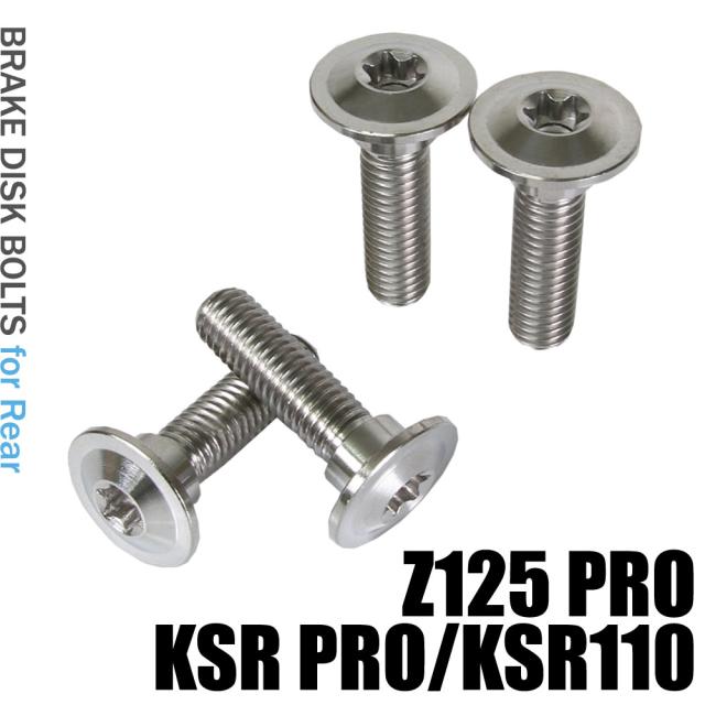 チタンボルト カワサキ Z125 PRO KSR PRO KSR110専用 ブレーキディスクボルト リア用 4本セット M8×30 P1.25 シルバー 軽量化 カスタム ネジ
