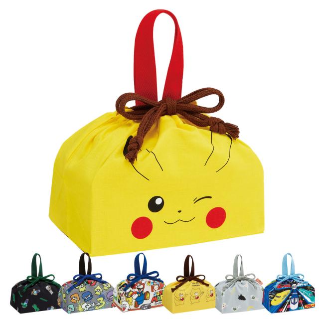 巾着 ランチ巾着 キャラクター ( マインクラフト スプラトゥーン スーパーマリオ ピカチュウ プラレール めがねうさぎ ノラネコぐんだん )