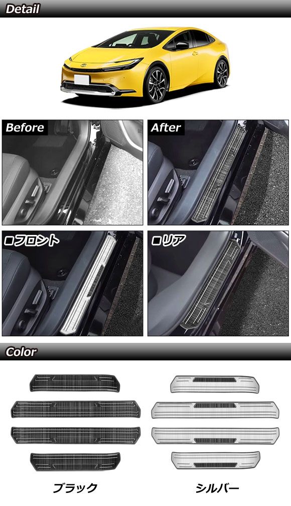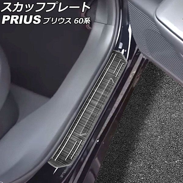 スカッフプレート 外側 トヨタ プリウス 60系 2023年01月〜 ブラック ステンレス製 ヘアライン仕上げ 入数:1セット(4個) AP-SG289-BK