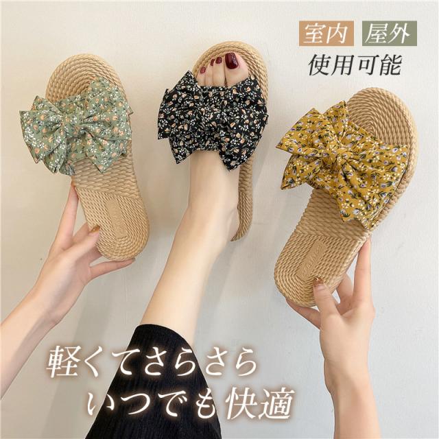 スリッパ レディース 女の子 ミュール 女性用 蝶結び 可愛い 海 軽量 ビーチサンダル リゾート 滑り止め アウトドア 快適 低
