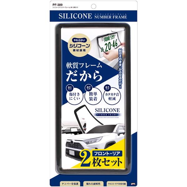 槌屋ヤック PF-389 シリコーンナンバーフレーム BK 2枚入り PF389【お取り寄せ商品】【普通車・軽自動車対応 ナンバー プレートカバー NOプレート カバー フレーム】