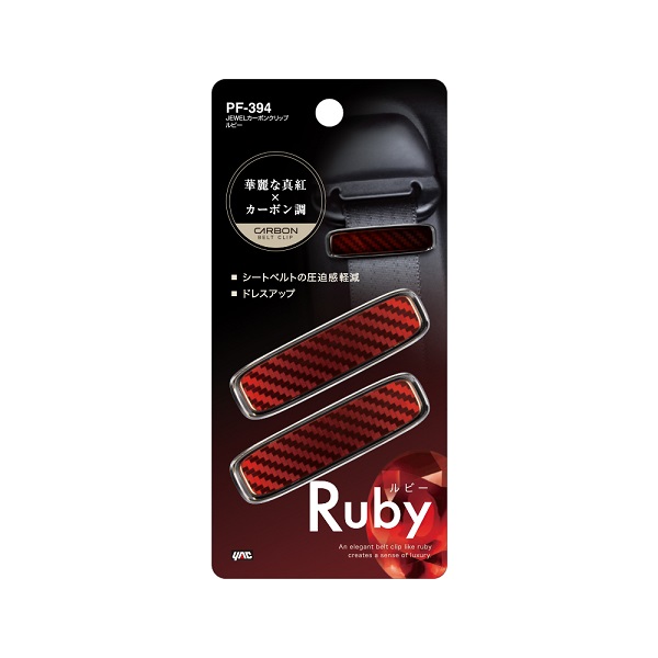 槌屋ヤック PF-394 JEWELカーボンクリップ ルビー ブラックメッキ・レッドスモーク PF394【ネコポス対応品2】【お取り寄せ商品】YAC カー用品 シートベルト バックル ストッパー パット パッド カバー クリップ ヘルパー