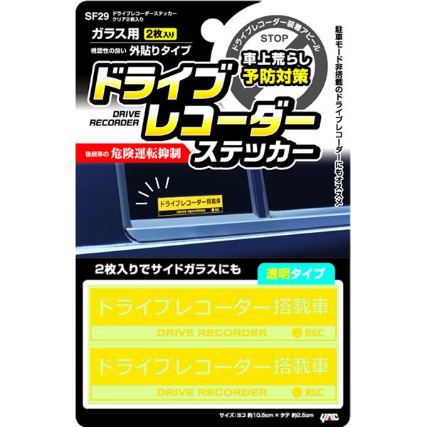 ■槌屋ヤック SF-29 ドライブレコーダーステッカー クリア2枚入り SF29