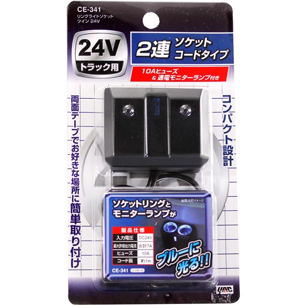 槌屋ヤック CE-341 リングライトソケット ツイン 24V CE341【お取り寄せ商品】【カー用品 電源 シガー ソケット トラック用 】