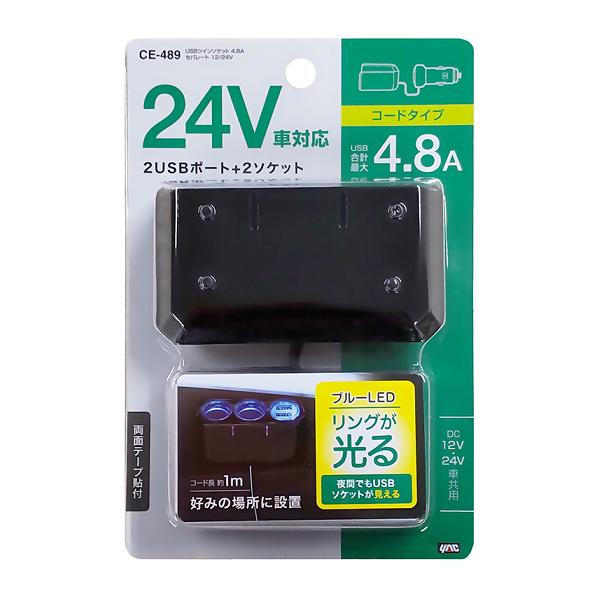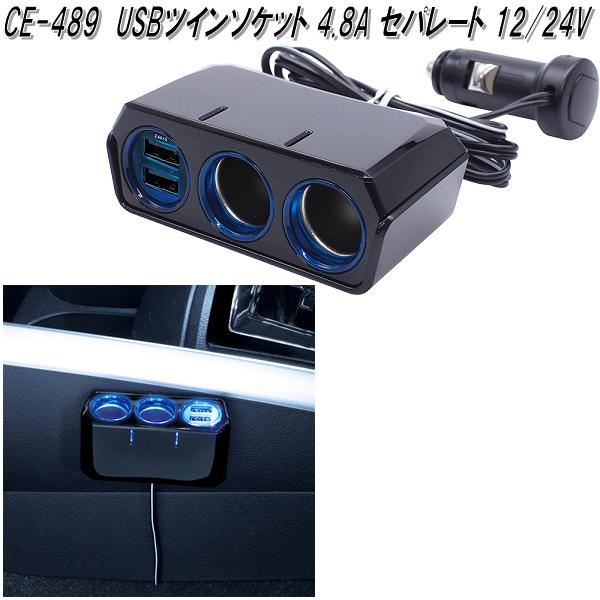 槌屋ヤック CE-489 USBツインソケット 4.8A セパレート 12/24V CE489【お取り寄せ商品】【カー用品 USB 電源 シガーソケット USB充電器 携帯充電器 スマホ充電器 iPhone充電器】