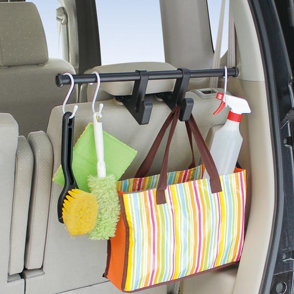 ◇ヘッドレストに取り付けていろいろな使い方ができる便利なマルチバー&フック。
