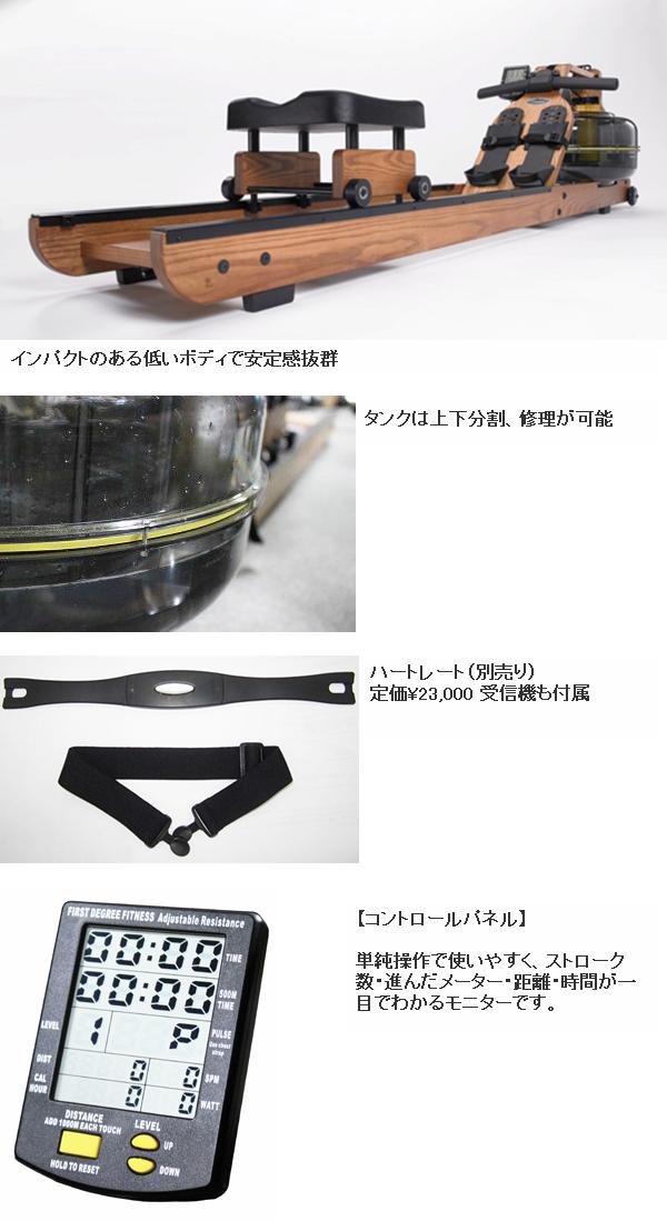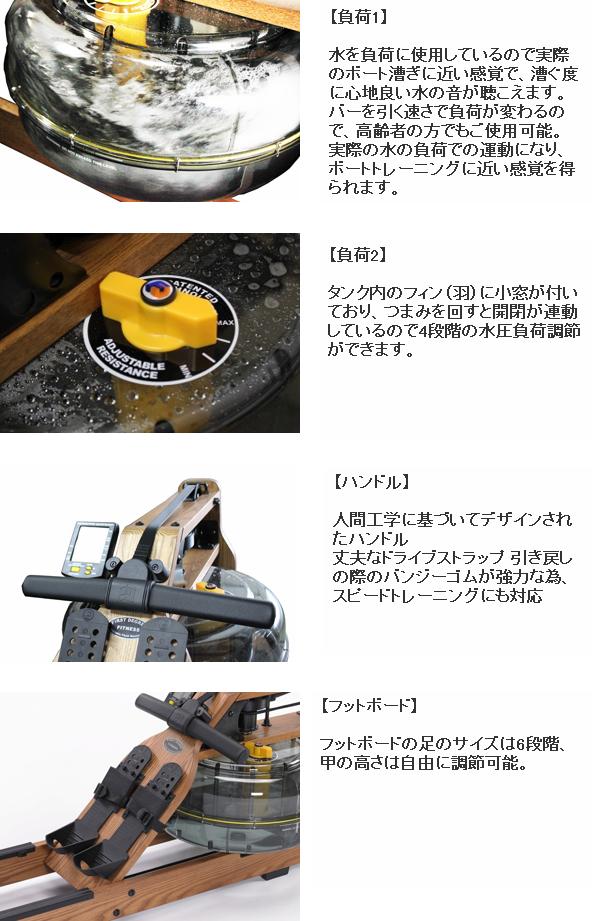 ・水を負荷に使用しているので実際のボート漕ぎに近い感覚で、漕ぐ度に心地良い水の音が聴こえます。