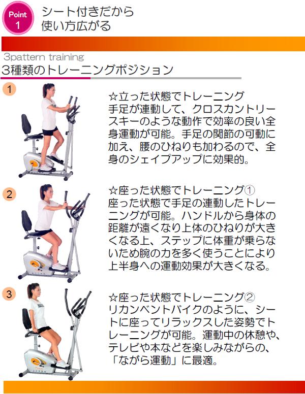 ◇シート付きだから使い方広がる3種類のトレーニングポジション