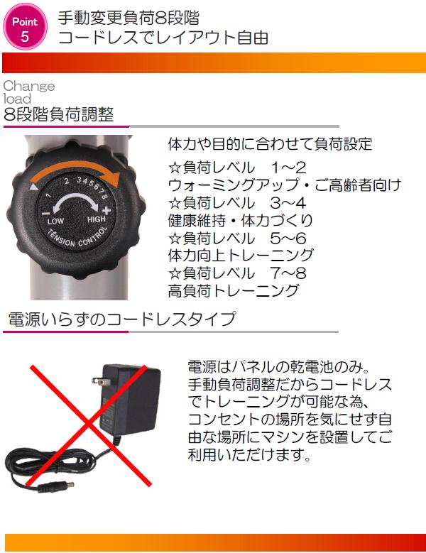 ●手動ダイヤル式負荷調整(8段階・マグネット負荷方式)
