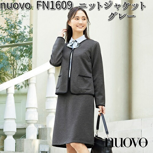 FOLK フォーク FN1609-5 ニットジャケット レディース グレー nuovo ヌーヴォ【お取り寄せ製品】【女性用 事務服 営業 受付嬢 リクルート スーツ】