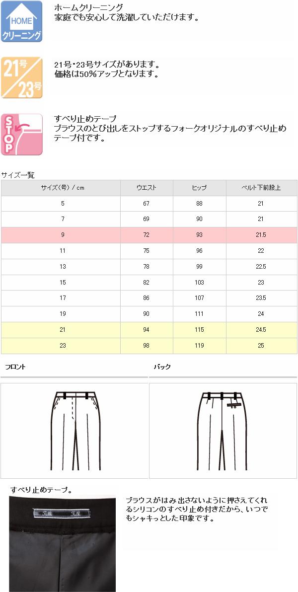 ●すべり止めテープ → ブラウスのとび出しをストップするフォークオリジナルのすべり止めテープ付です。