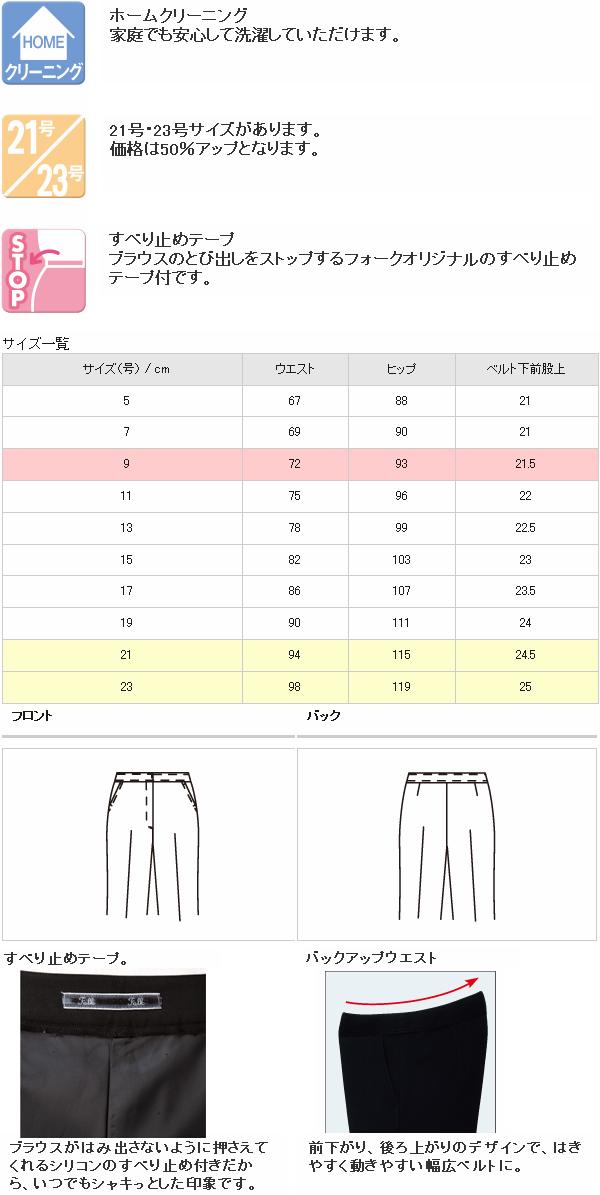 ●すべり止めテープ → ブラウスのとび出しをストップするフォークオリジナルのすべり止めテープ付です。