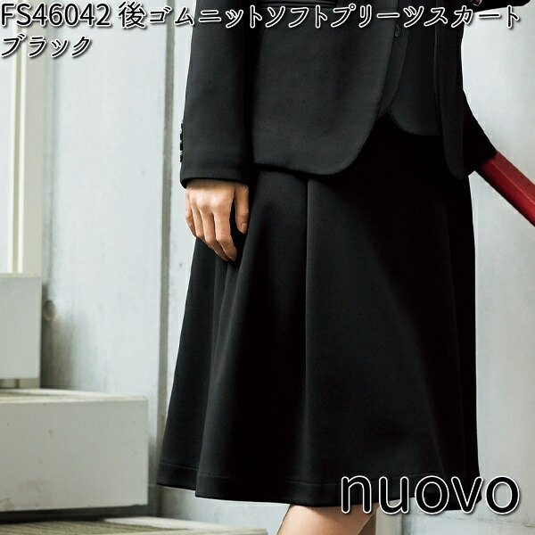 FOLK FS46042-9 nuovo レディース 後ゴムニットソフトプリーツスカート ブラック 5〜23号 フォーク ヌーヴォ 【お取り寄せ製品】【女性用 事務服 営業 受付嬢 リクルート スーツ】