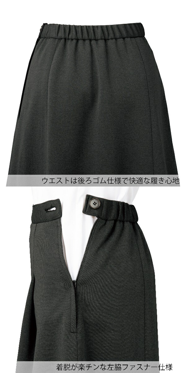 ■FS46042-55 nuovo レディース 後ゴムニットソフトプリーツスカート チャコール 5?23号