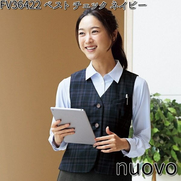 FOLK FV36422-7 nuovo レディース ベスト チェック ネイビー 5〜23号 フォーク ヌーヴォ 【お取り寄せ製品】【女性用 事務服 営業 受付嬢 リクルート スーツ】