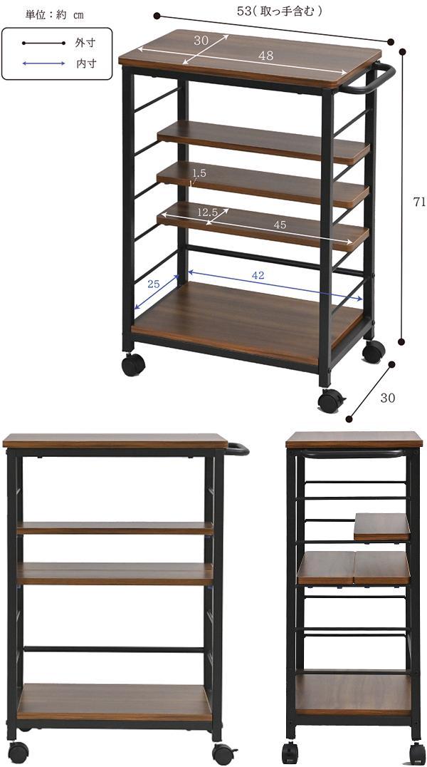 フクダクラフト KW-5385 DBR A キッチンワゴン ダークブラウン KW5385DBRA