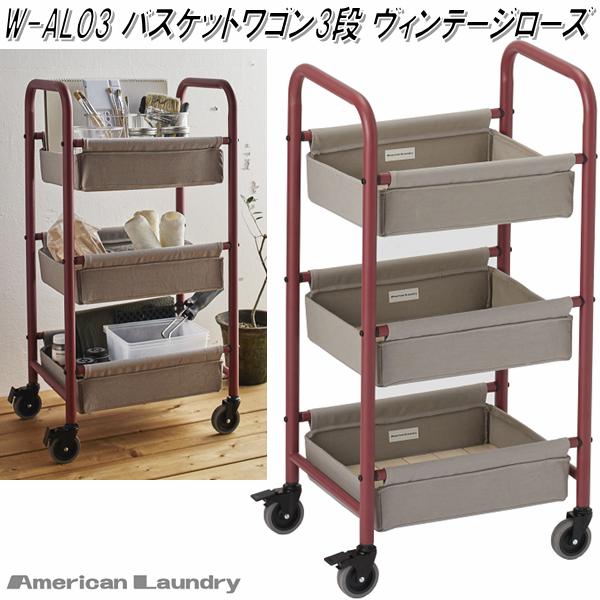 ■フクダクラフト W-AL03 バスケットワゴン 3段 ヴィンテージローズ